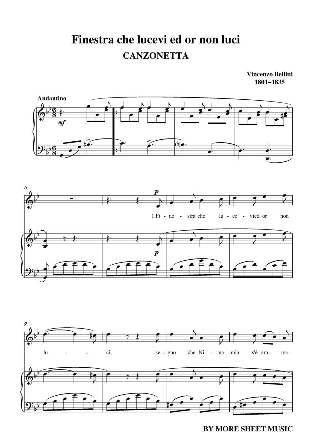 Finestra che lucevi ed or non luci by Bellini, for Voice and Piano, 9 versions (depending on keys), this is one of the 9.