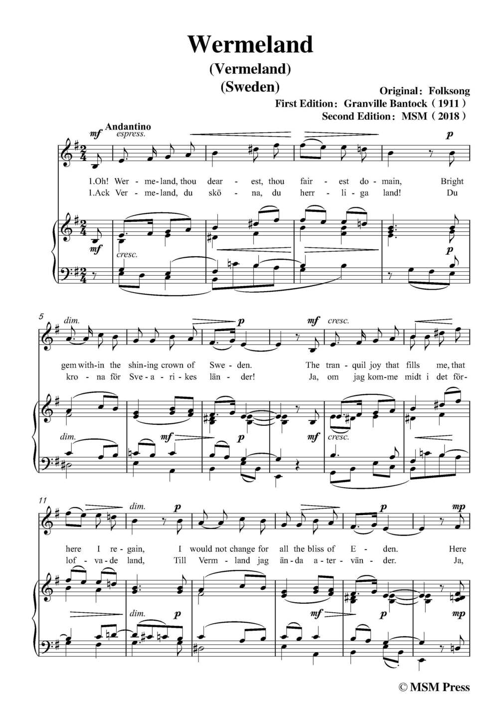 Bantock-Folksong,Wermeland(Vermeland),in e minor,for Voice and Piano