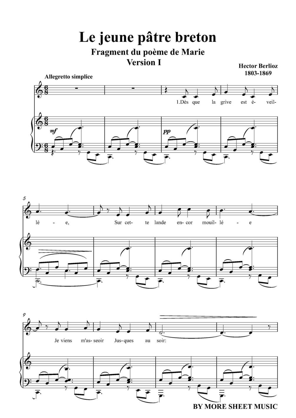 Le jeune pâtre breton by Berlioz, for Voice and Piano, 9 versions (depending on keys), this is one of the 9.