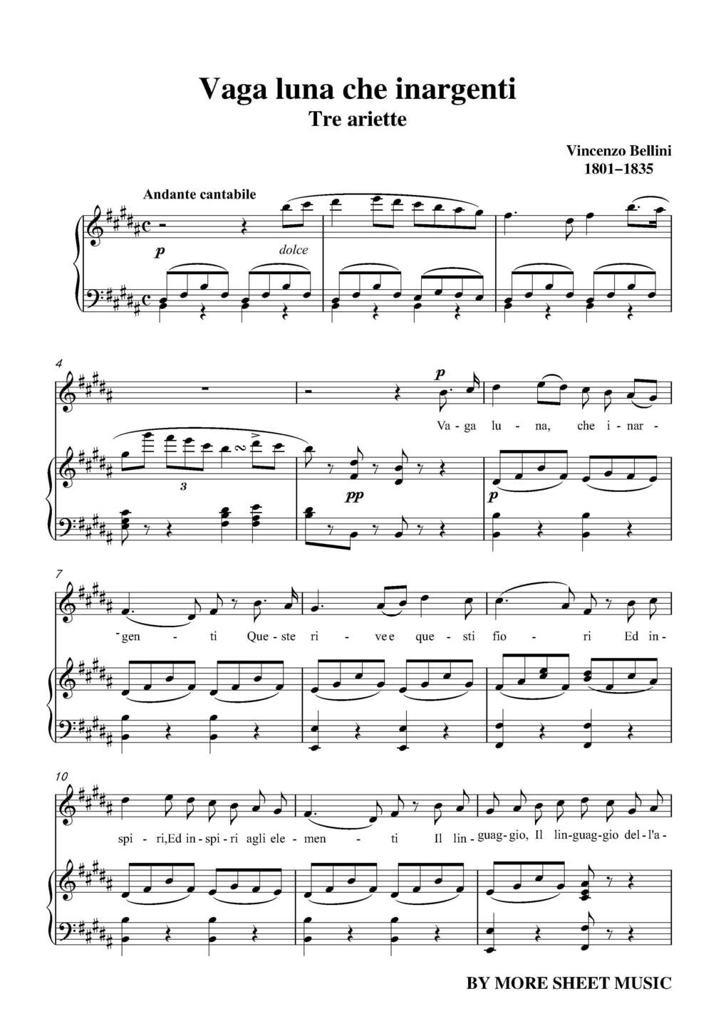 Vaga luna che inargenti by Bellini, for Voice and Piano, 9 versions (depending on keys), this is one of the 9.